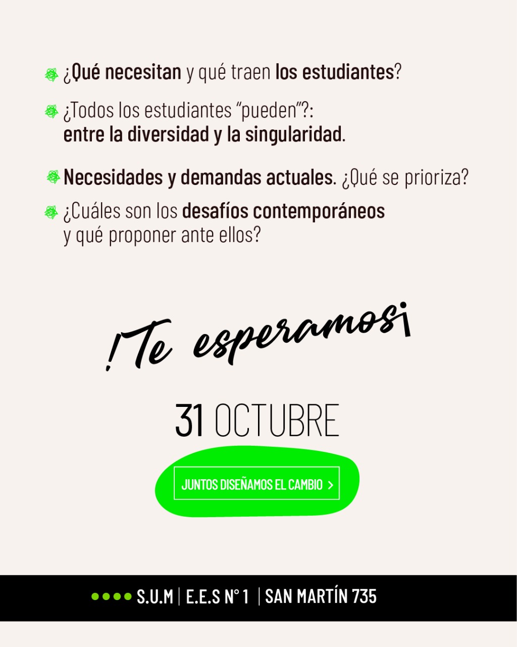 ➡️ La Jornada se desarrollará el día LUNES 31 de OCTUBRE, de 13 a 18 hs en el SUM de la EES N°1.