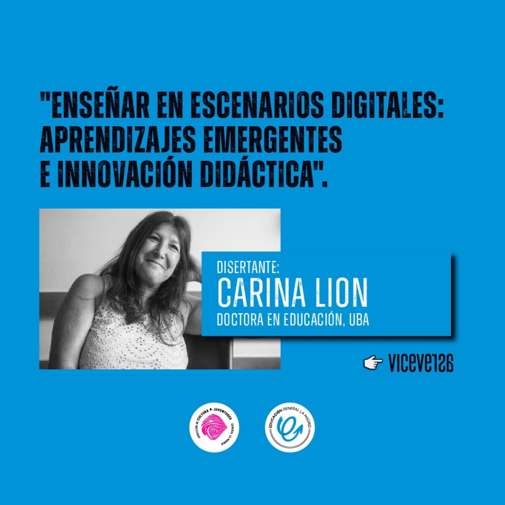 Charla central: ENSEÑAR EN ESCENARIOS DIGITALES: APRENDIZAJES EMERGENTES E INNOVACIÓN DIDÁCTICA , a Cargo de CARINA LIÓN